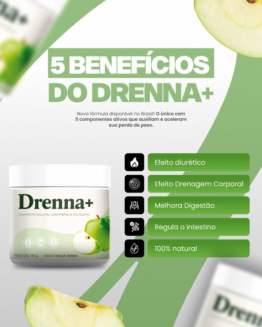 Chega de se sentir estufada, cansada e frustrada com dietas que não funcionam. Drenna+ é mais que um suplemento: é uma virada de chave no seu corpo. Desenvolvido especialmente para mulheres com metabolismo lento, ele atua nas maiores barreiras do emagrecimento — como retenção de líquidos, fome emocional e digestão lenta.