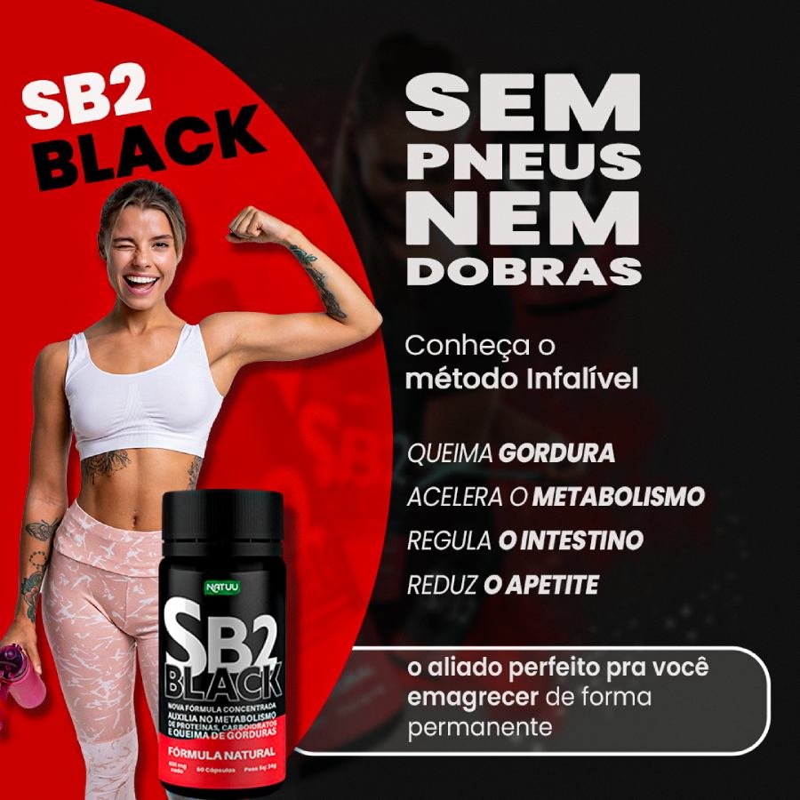 Ideal para quem busca emagrecer com saúde, leveza e bem-estar. Com apenas 2 cápsulas por dia, SB2 Black transforma seu corpo e sua autoestima.